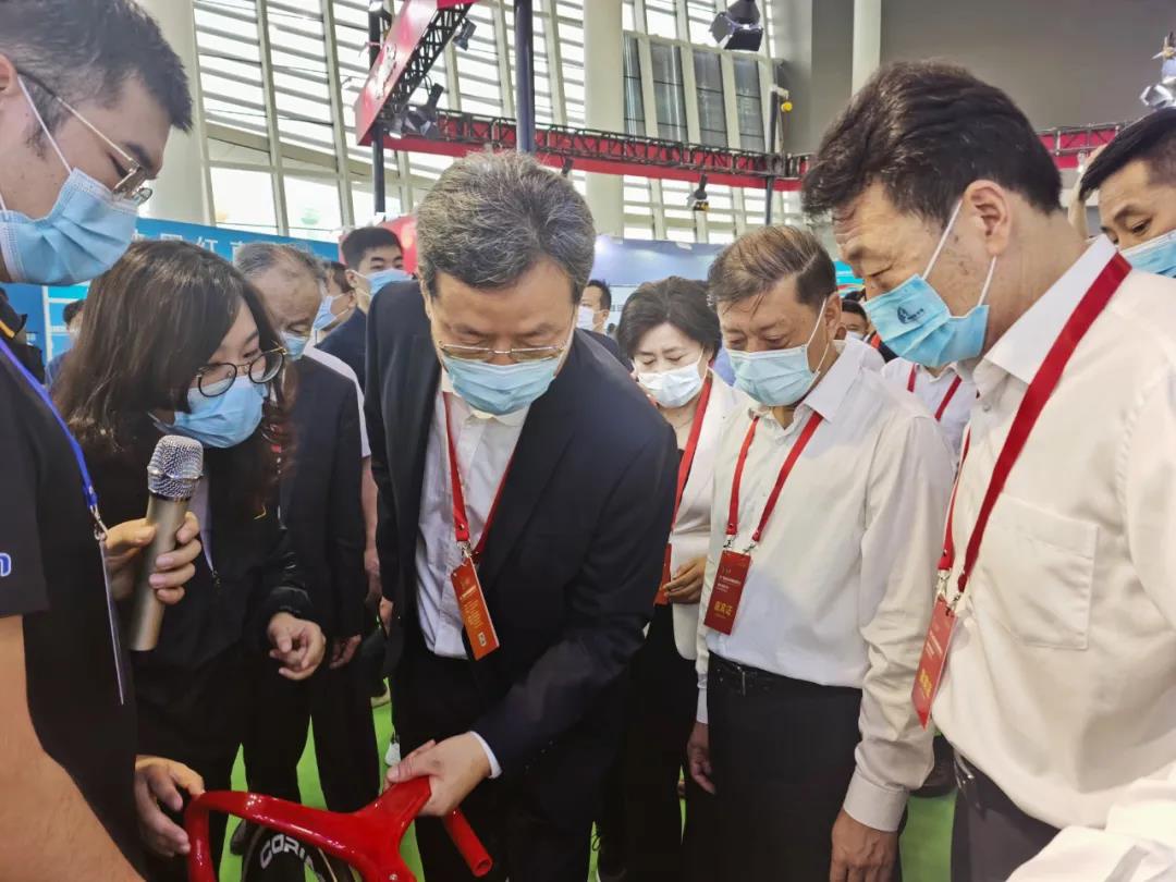 国家体育总局体育器材装备中心副主任王平,临沂市委书记王安德,临沂市委副书记、市长任刚,临沂体育局局长刘艳芬等领导莅临中国·金沙(js69认证)体育展位参观