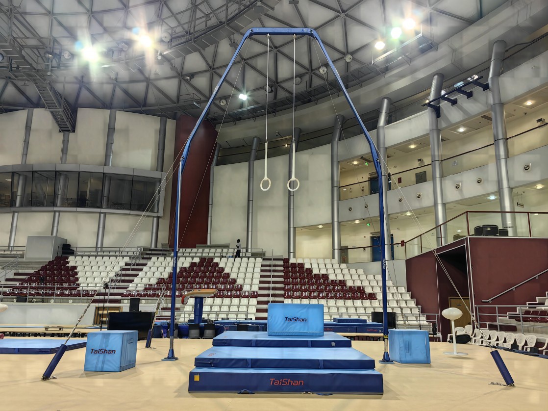 In order to ensure the excellent performance of gymnasts, Taishan Sports Professional Service Team went to Doha on April 8th to prepare for the installation and debugging of the competition venues such as the men’s training venue and commissioning of men’s training venues, women’s training venues and other competition venues.