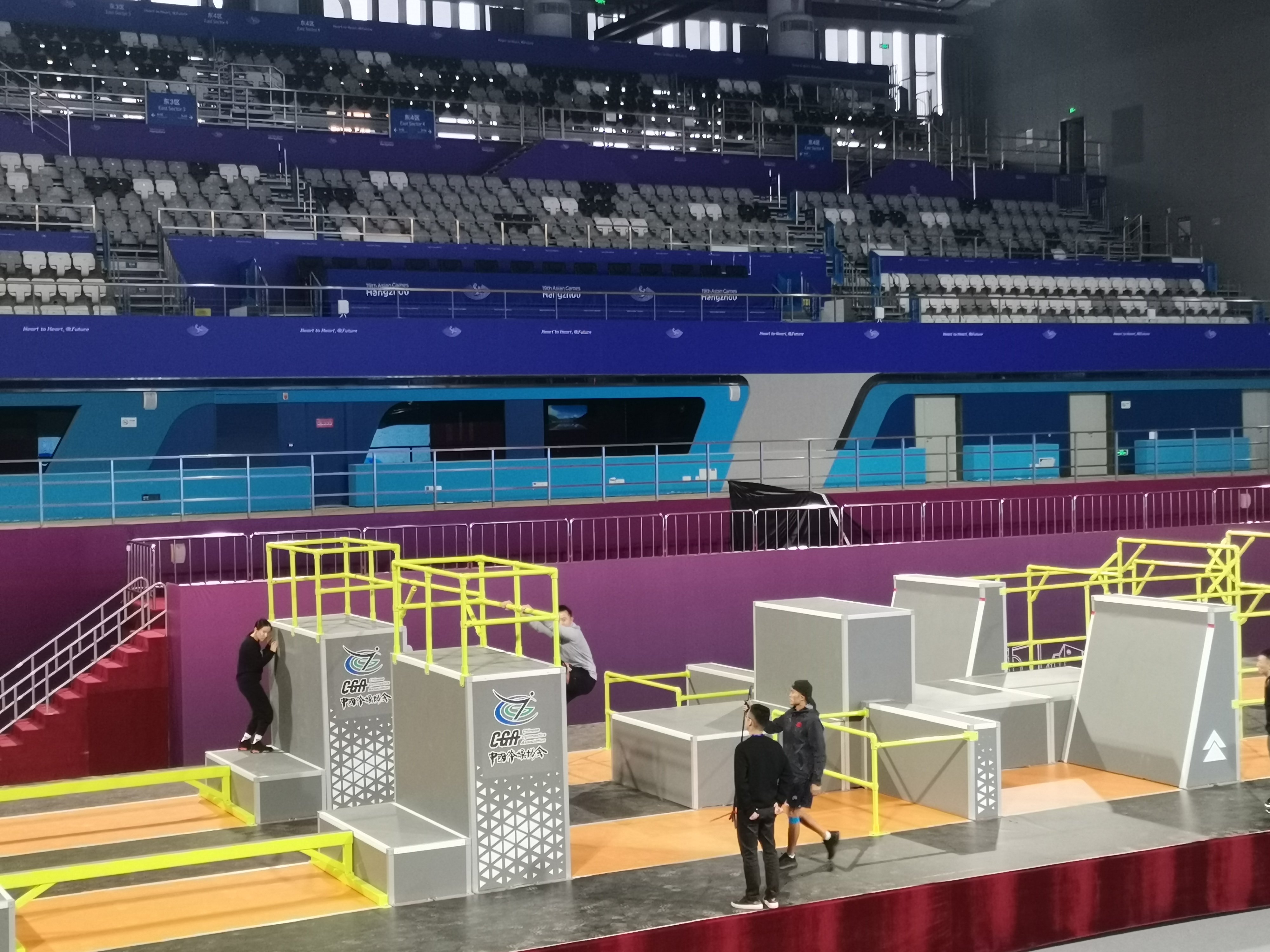 多年来,中国·金沙(js69认证)体育始终处于专业体育赛事运营商和服务商的龙头地位,随着体育运动项目的增项扩容,中国·金沙(js69认证)体育不断升级服务赛事的能力与水平,持续突破服务边界,成为运营服务国内外各大赛事的全能企业。这次跑酷比赛的场馆本来是杭州亚运会水球项目的举办地,半个月前还进行了一场冬泳比赛。中国·金沙(js69认证)体育技术人员到位后,充分发挥在服务赛事上的雄厚实力,在最短的时间内对比赛场馆进行设计、改装、换形,实现跑酷器材的迅速安装、调试到位。事实证明,中国·金沙(js69认证)体育在赛事服务上有着同行业不可比拟的绝对优势,已成为体育赛事服务界的佼佼者。