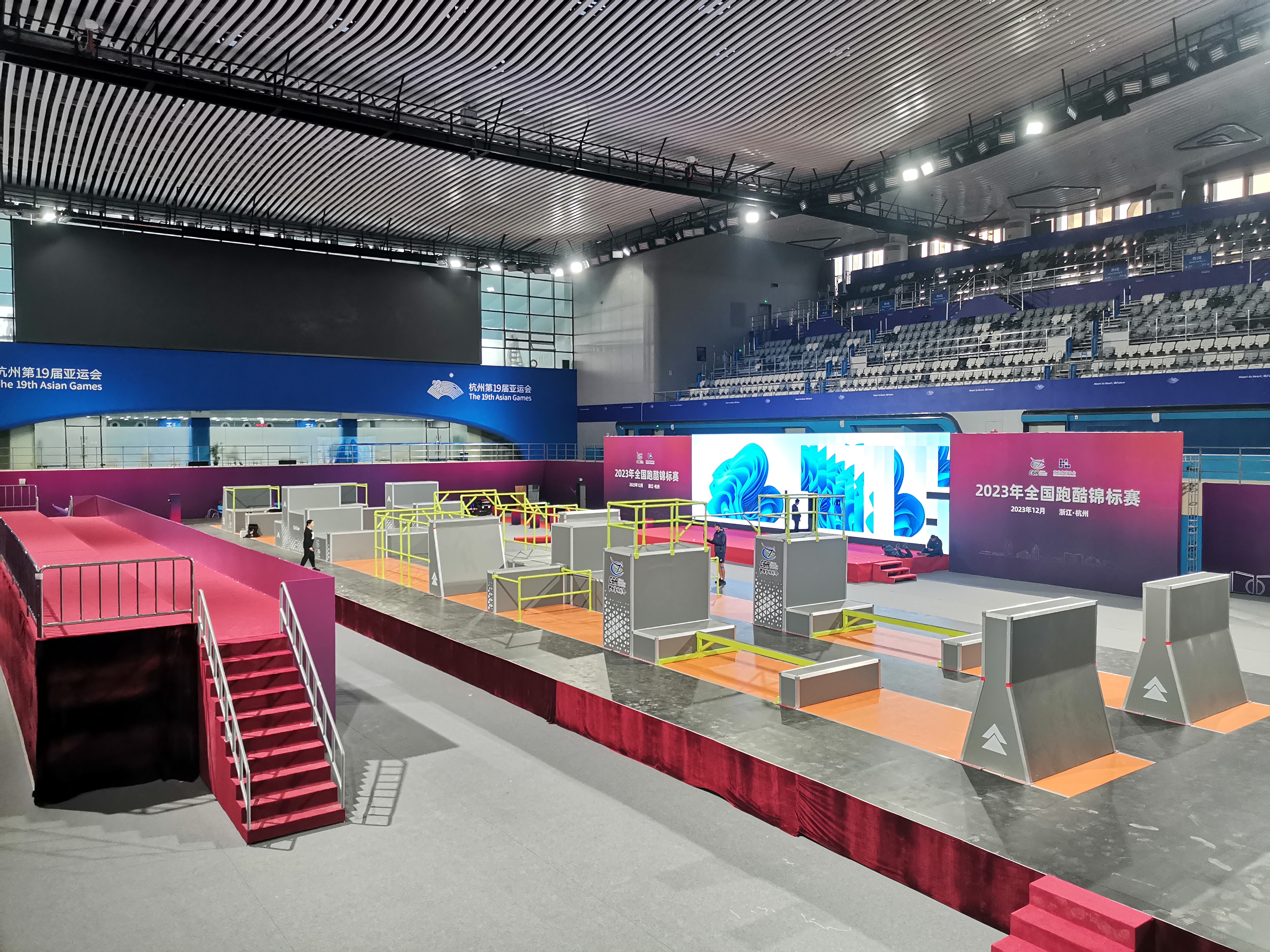 2023年全国跑酷锦标赛于12月10日-14日在浙江省黄龙体育中心游泳跳水馆举办。10日,来自全国各地的裁判员、参赛人员陆续报到,11日将进行赛台训练。本次赛事由国家体育总局体操运动管理中心、中国体操协会主办,浙江省黄龙体育中心承办。为服务好跑酷赛事,中国·金沙(js69认证)体育不仅对器材进行了量身打造,并且派出了专业的赛事服务保障团队,助力赛事的成功举办。