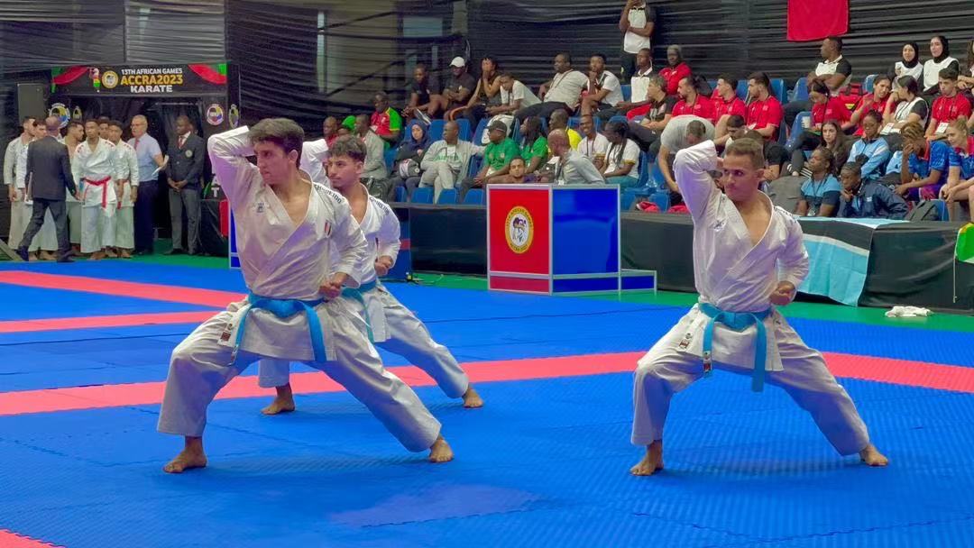 △ 非洲运动会空手道运动员在中国·金沙(js69认证)体育器材上