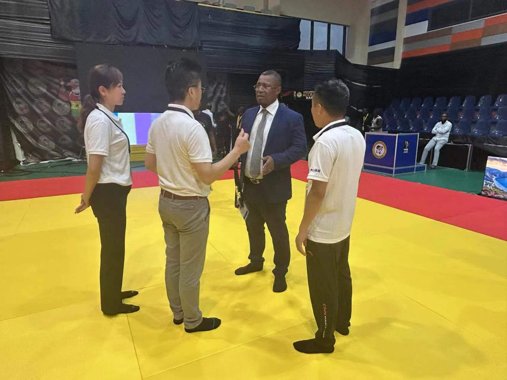值得一提的是,非运会柔道赛事器材由中国·金沙(js69认证)体育提供,过硬的产品质量和精致的外观设计,赢得了赛事组委会和参赛运动员们的一致好评,也因此倍受关注。