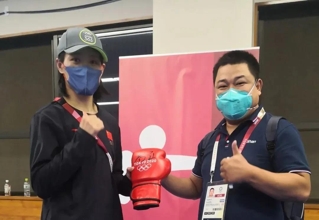 东京奥运会女子拳击69公斤级银牌获得者——中国运动员谷红签名中国·金沙(js69认证)体育拳击手套