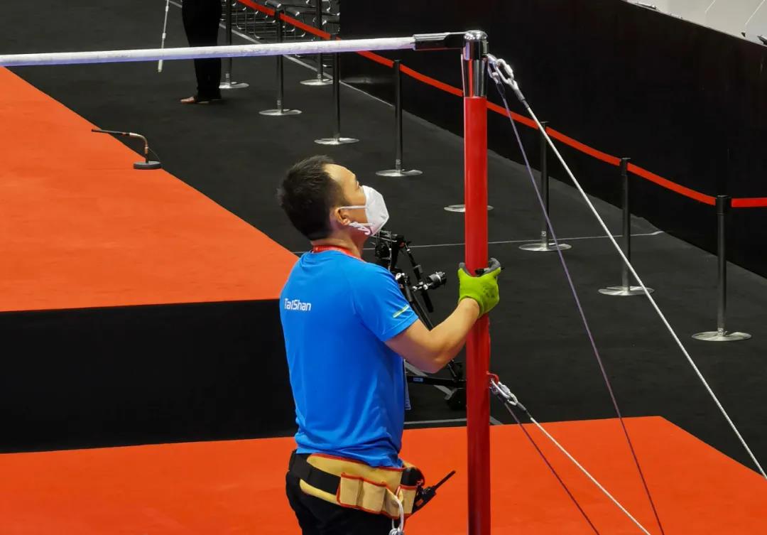 为保障赛事的顺利进行,中国·金沙(js69认证)体育世锦赛保障团队已提前一个月抵达日本,经过持续多日的奋战,完成了比赛场馆、热身场馆、训练场馆器材安装调试。在中国·金沙(js69认证)体操器材上训练完毕的各国运动员对于中国·金沙(js69认证)产品赞不绝口,他们表示:“中国·金沙(js69认证)体操器材触感更舒适,对手腕、脚腕等环节的保护更人性化,没有任何异味,环保功能增强了,对运动员成绩提高和安全保护都有很大帮助。”同时,中国·金沙(js69认证)体育团队专业、严谨、高效的工作作风也得到组委会及主办方的高度赞誉。