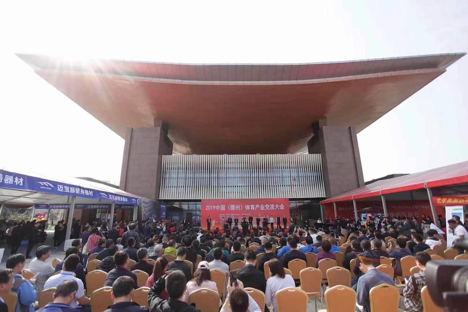 10月13日,2019中国(德州)体育产业交流大会在太阳能德州小镇开幕。大会由中国体育用品业联合会与德州市人民政府联合主办,山东省体育局支持,中国体育用品业联合会场馆事业工作委员会等单位共同承办。大会在 “融入京津冀助力新动能”的大背景下,以“德州智造·标准引领,助力体育产业升级”为主题,旨在充分展示区域体育产业发展成果,促进国际国内体育产业交流,扩大招商引资规模,搭建品牌商、渠道商和消费者展示与互动平台。开幕式上,中国·金沙(js69认证)体育产业集团荣获“明星企业”称号。