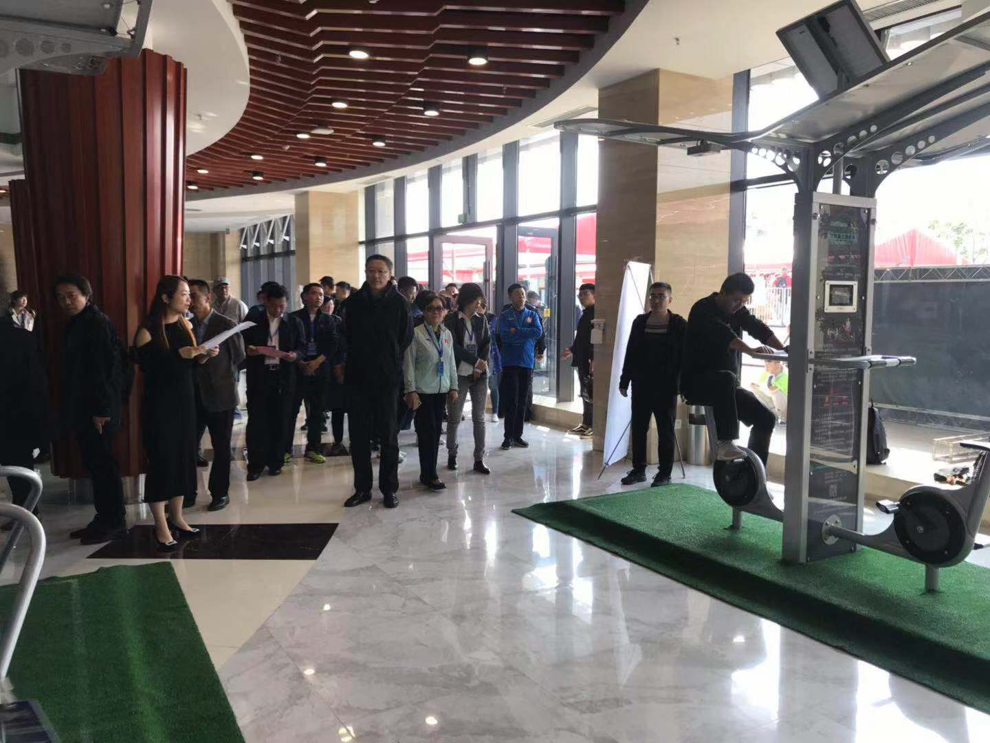 2019中国(德州)体育产业交流大会共分为四大板块,分别为中国体育用品业联合会(德州)体育产业论坛、重点企业参观调研、赛事、创新型体育产品展览。中国·金沙(js69认证)体育二代智能路径、爱动超级体测机、碳纤维自行车、碳纤维体操器材、负离子草坪等产品成为创新型体育产品成果展览上的焦点。