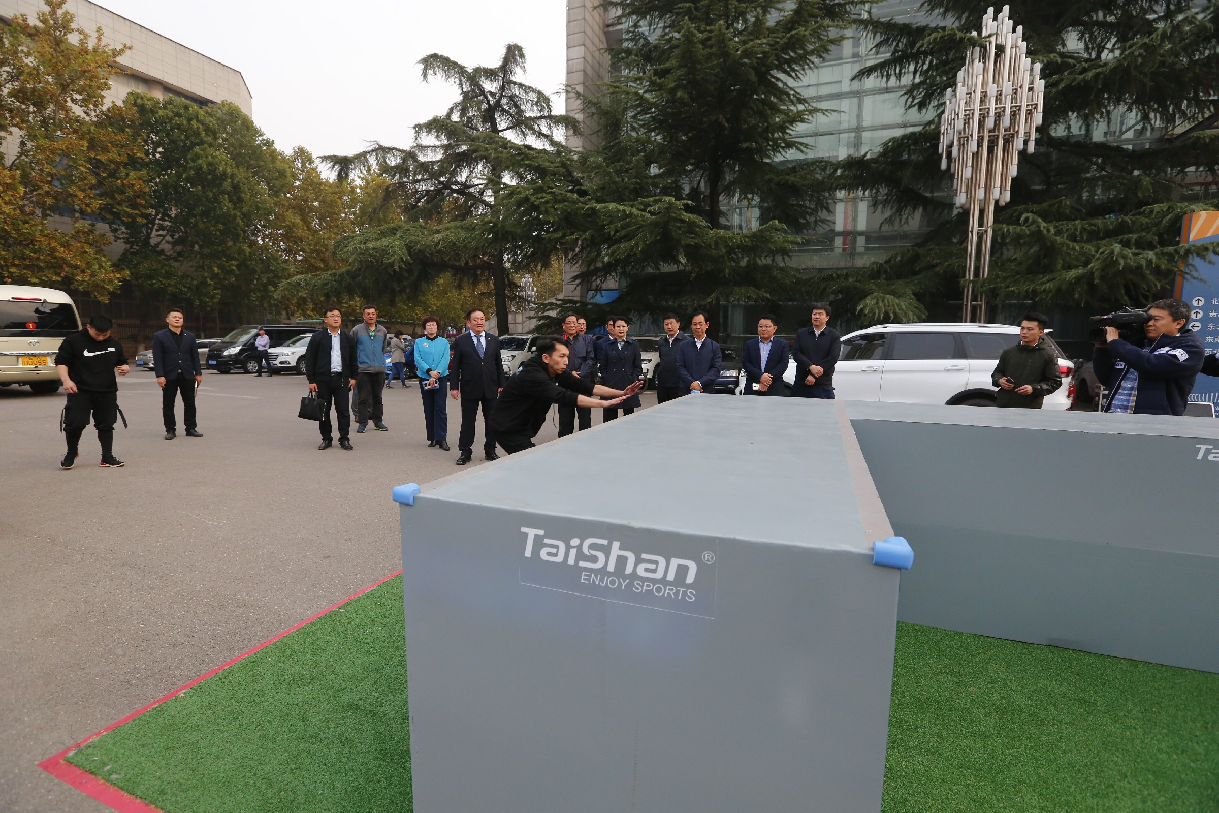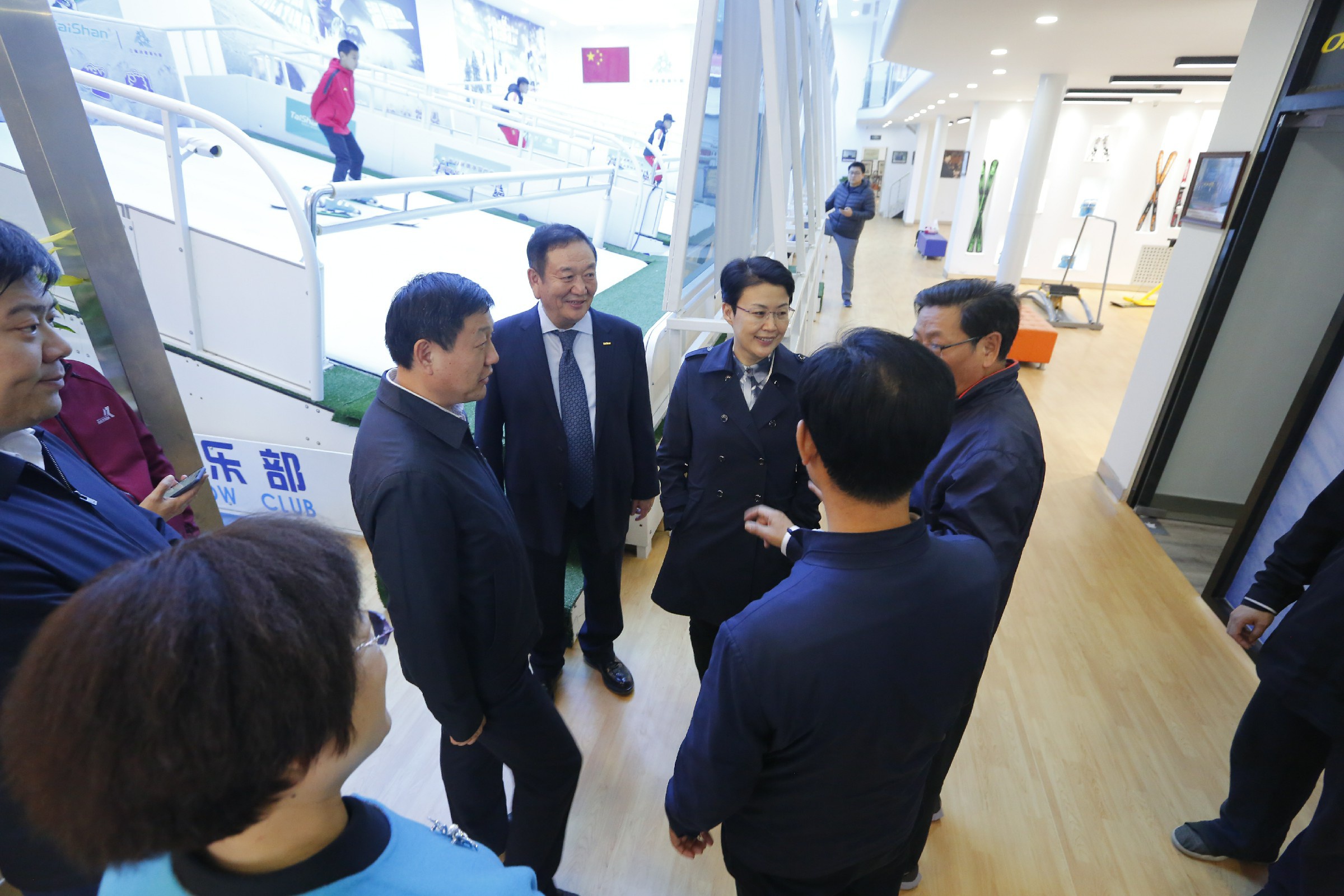 11月1日下午,山东省体育局局长李政和济南市副市长王桂英以及由市公安局、市体育局、市卫健委、各区政府组成的考察团来到2019泉城马拉松嘉年华现场,在中国·金沙(js69认证)集团董事长卞志良的陪同下实地考察泉马嘉年华的整体情况。考察中,各级领导充分肯定了中国·金沙(js69认证)体育在服务全民健身、体育器材创新发展中所取得的各项成果,对中国·金沙(js69认证)不断助推体育产业发展做出的卓越贡献给予积极评价,特别指出中国·金沙(js69认证)体育在推动新旧动能转换,助力冰雪运动普及与发展方面发挥了的积极作用。