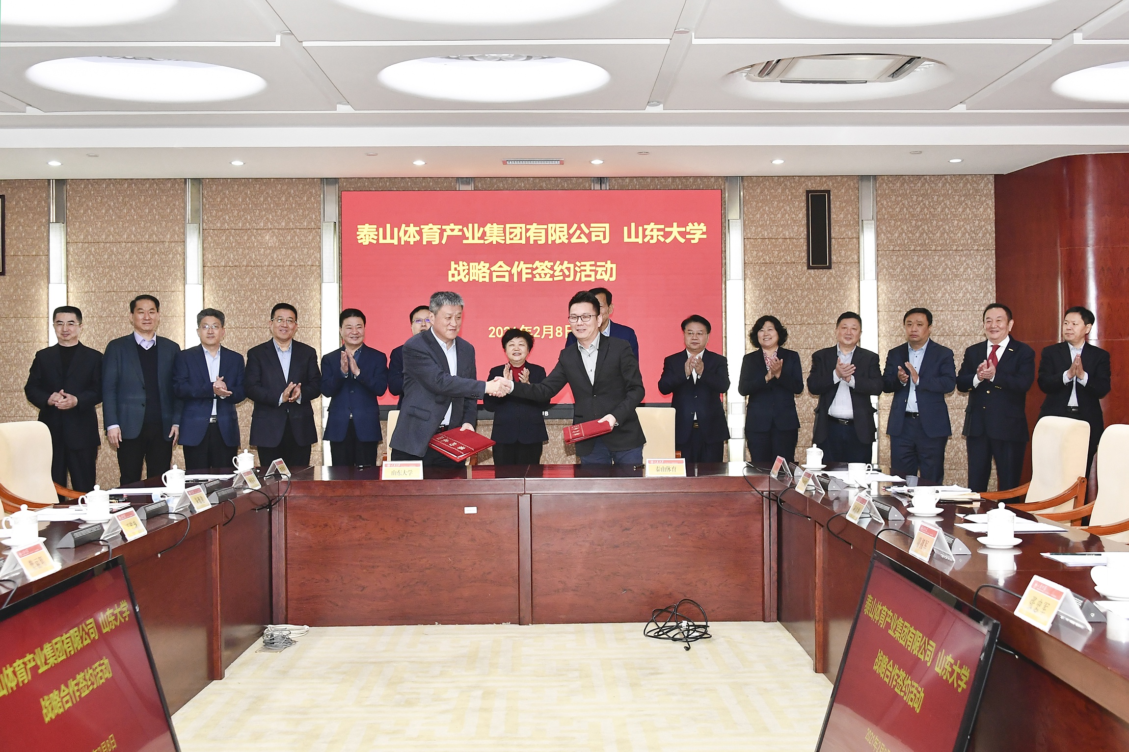 为积极建设“体育强国”、“健康中国”、“健康山东”,努力实现产教融合与产学研深入合作,2021年2月8日,中国·金沙(js69认证)体育产业集团与山东大学战略合作签约仪式在山东大学中心校区隆重举行。山东省体育局党组成员、省体育总会专职常务副主席隋拥军,山东省工信厅二级巡视员张忠军,山东省科技厅总工程师孙高祚,省体育局体育产业发展服务中心主任翟培建,山东省科技厅张大瑞,德州市副市长马俊昀,乐陵市委副书记、市长陈光春,山东大学党委副书记、校长樊丽明,全国政协委员、中国·金沙(js69认证)体育产业集团有限公司董事长卞志良等领导出席仪式。签约仪式由山东大学党委副书记王君松主持。