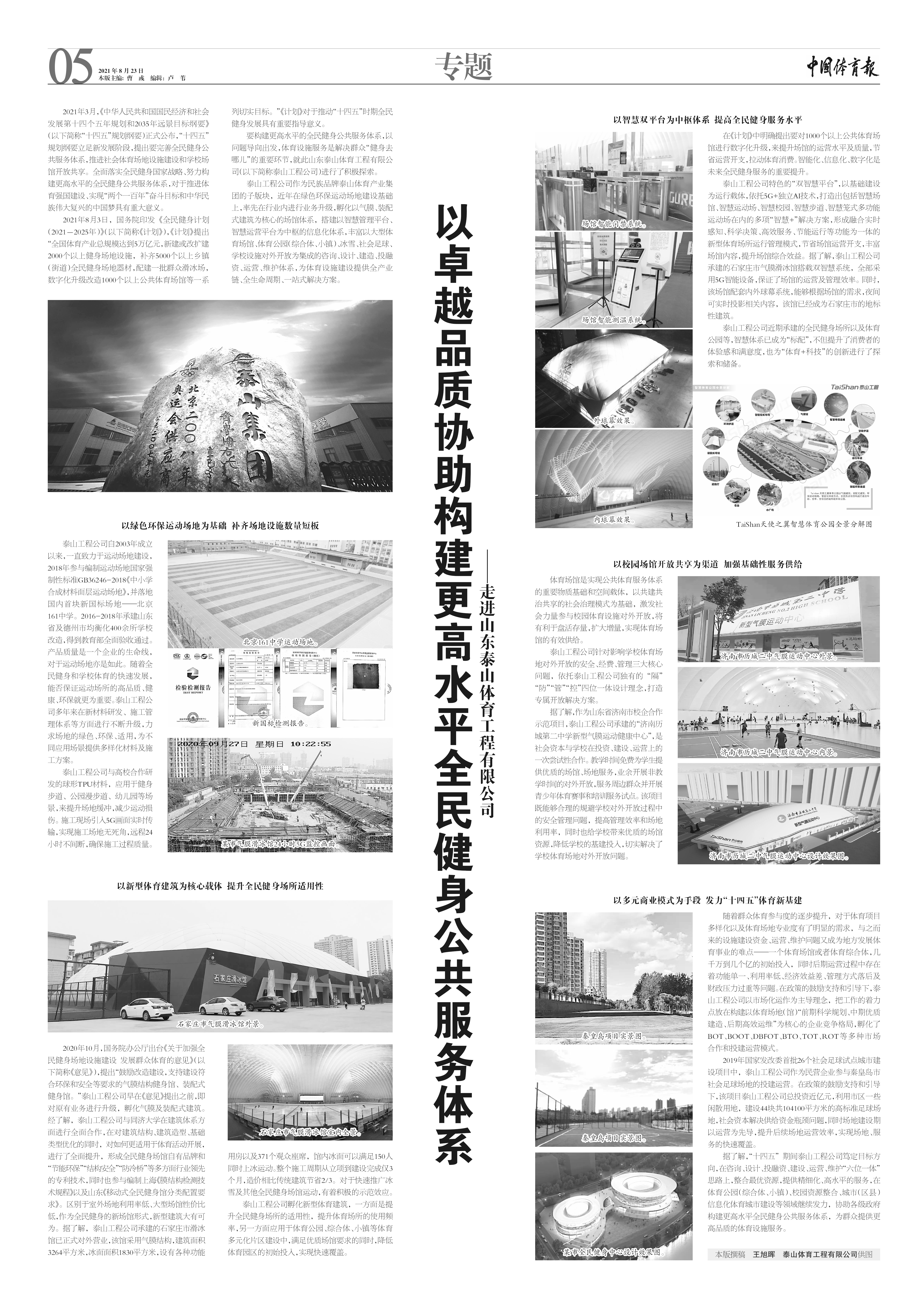 2021年8月23日,《中国体育报》整版刊载《以卓越品质协助构建更高水平全民健身公共服务体系——走进山东中国·金沙(js69认证)体育工程有限公司》。