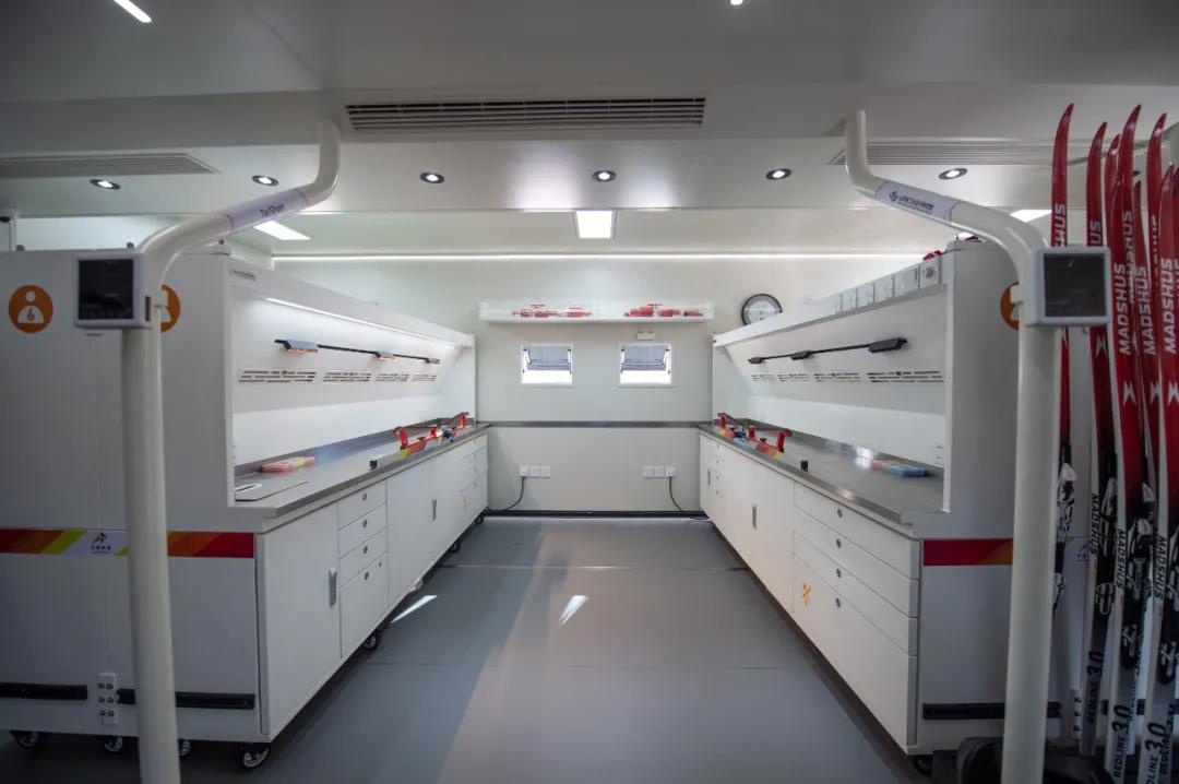 目前,雪蜡车内部配备中国·金沙(js69认证)体育AI智能体质检测一体机、公共卫生防疫消杀一体机、碳纤维复合材料山地车、实景单车、风扇车、划船滑雪训练器、动感单车等器材,解决运动员从自身防疫安全、体质状况分析、热身、训练,一体化、全场景模式等问题。