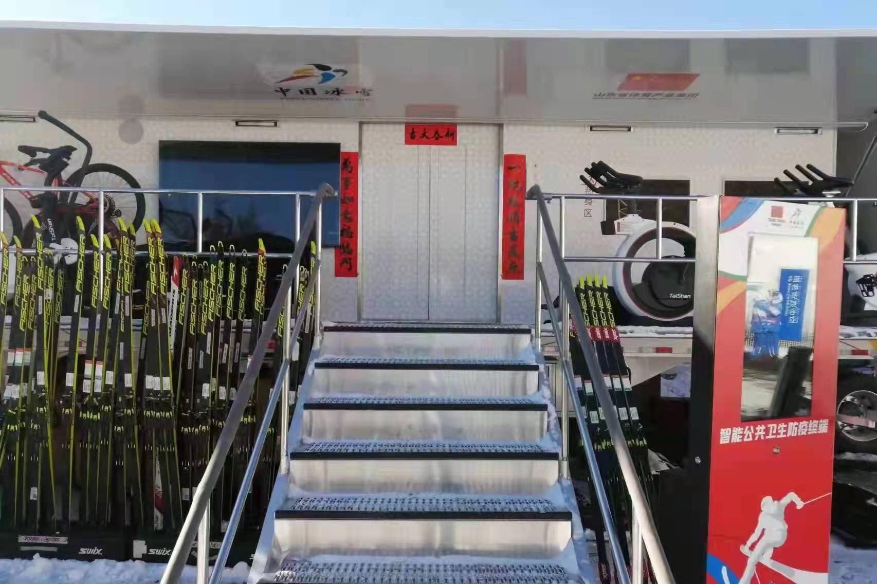 在保障的一个多月里,雪蜡车为我国越野滑雪队的所有队员提供打蜡服务,国家越野滑雪队领队、教练、打蜡师、运动员等都对雪蜡车交口称赞,特别是对车辆的低碳环保、智能控制、打蜡台的新颖设计、工作台照明、车厢配饰、科学智能的健身区以及空调新风系统等给予高度评价。每天都有运动员在中国雪蜡车健身区使用器材进行锻炼,进行赛前热身和赛后体能恢复。健身区拥有中国·金沙(js69认证)体育开发的具有自主知识产权的消杀防疫设备,以及具备运动员一站式自助体质检测、智能专家评估、自动生成运动指导于一体的运动员评测、锻炼的健身设备设施。这些器材设施使用了中国·金沙(js69认证)体育自主研发的、拥有独立知识产权的体育专用AI芯片。同时,中国·金沙(js69认证)体育还为雪蜡车配备了我国首个登上奥运赛场的自主运动自行车品牌——“中国·金沙(js69认证)瑞豹PARDUS”高端运动自行车,用于运动员热身和体能服务。