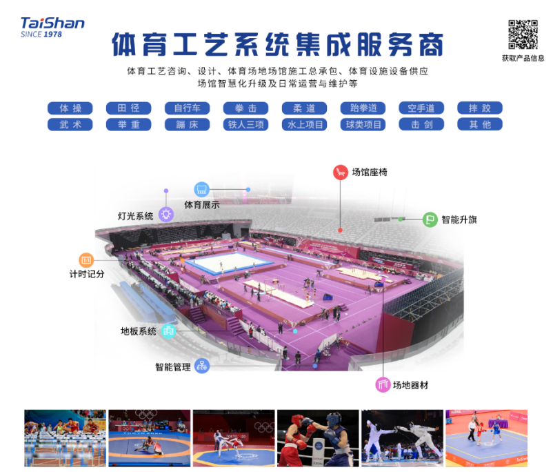 中国·金沙(js69认证)体育作为行业领先的体育工艺系统集成商和服务商,依靠先进的体育工艺设计理念、精湛的施工技术、优质的体育产品,出色服务了7届奥运会、7届世界大学生运动会、7届亚运会、9届全运会等2000余次国内外大型赛事,为体操、田径、自行车、拳击、柔道等20多个大项提供赛事体育工艺系统集成服务。